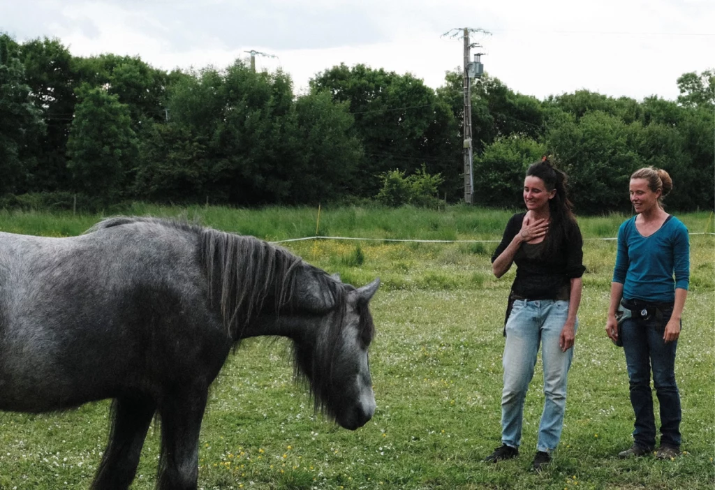 Je suis convaincue que les troubles physiques sont un témoignage d’un message fort. Aussi je n’ai pas fait qu’un soin, j’ai aussi écouté ce que le cheval avait à dire dans cette douleur. Cela parlait de la propriétaire et de ses propres troubles du ventre, de la façon dont elle digérait les choses dans sa vie, et ce qu’elle traversait dans le moment. Le soin s’est porté aussi sur elle. Nous avons échangé par téléphone, elle a confirmé ce que l’animal m’avait fait sentir. Le message était fort, envoyé par l’animal qui risquait sa vie. La femme a écouté, accueilli le soin pour son cheval et elle. Grâce à cette intervention et tous les soins qu’elle-même avait prodigué, le lendemain le cheval était tiré d’affaire.
