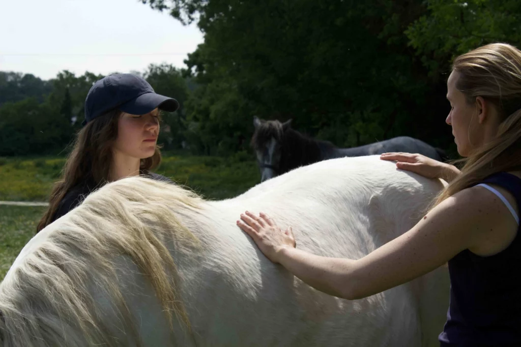 … J’écoute et ressens ce qui est présent, chaque situation est différente et appelle une mise en situation particulière : de la simple présence aux côtés du cheval, des pratiques à pied ou montées, des soins.